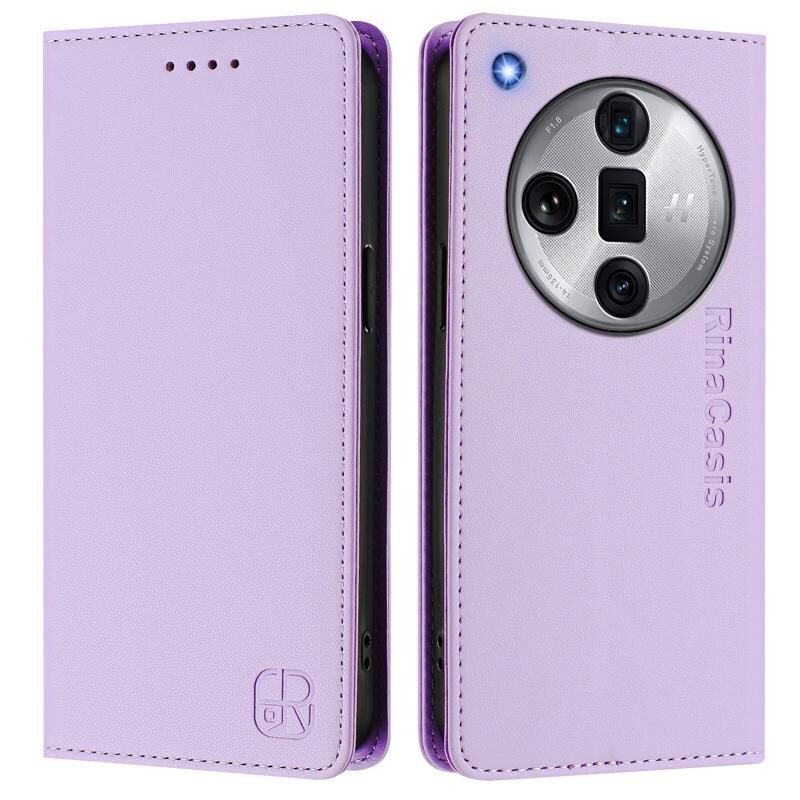 Θήκη τηλεφώνου από δέρμα με μαγνητική απορρόφηση και προστασία RFID για OPPO Find X7 Ultra RC01 διπλού τύπου (ανοιχτό μωβ)