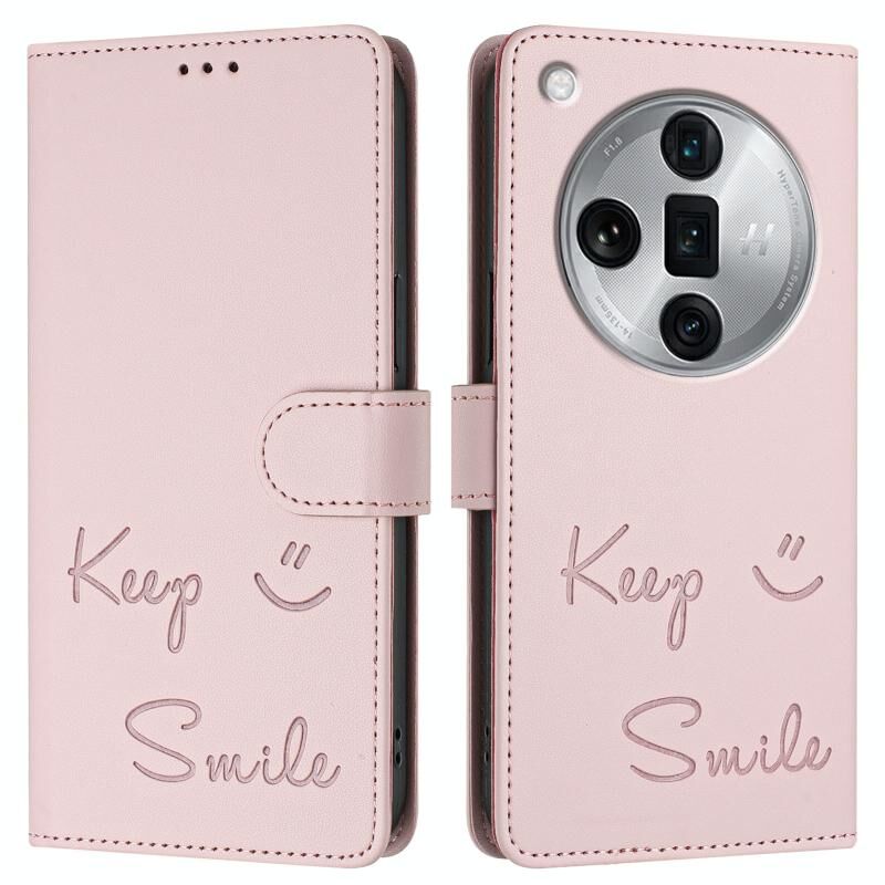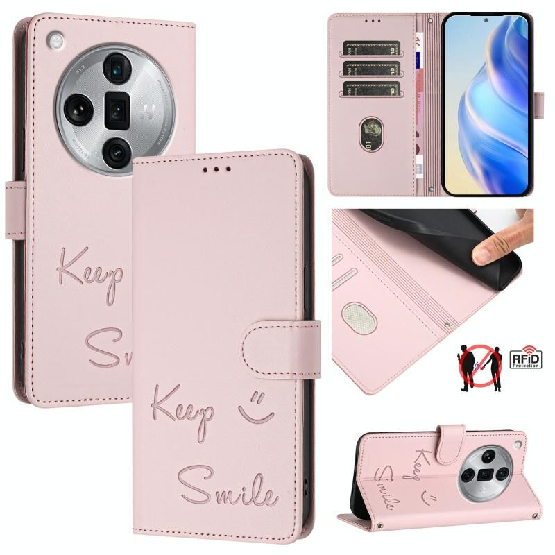 Για OPPO Βρείτε X7 Ultra χαμόγελο ανάγλυφο RFID δερμάτινη θήκη τηλεφώνου (ροζ)