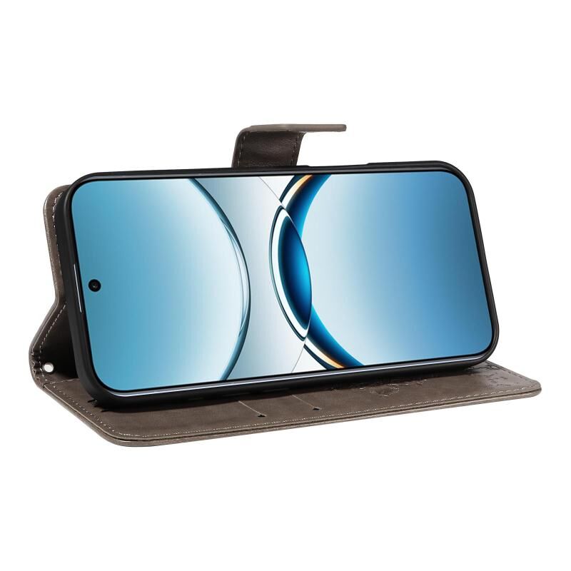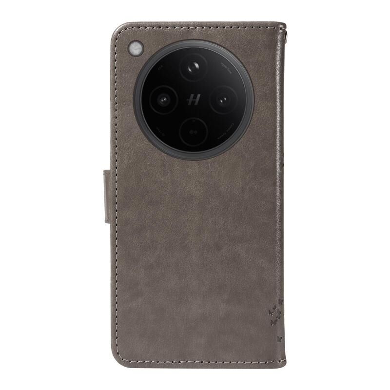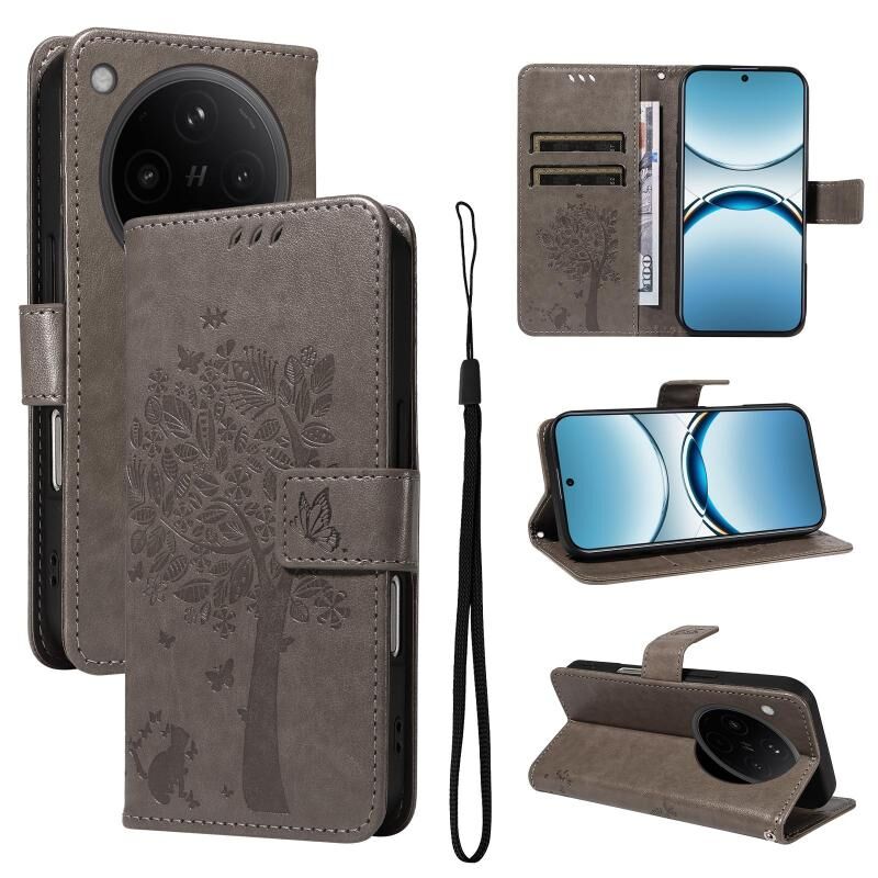 For OPPO Find X8 Global Tree & Cat Embossed Pattern Flip Leather Phone Case(Grey)