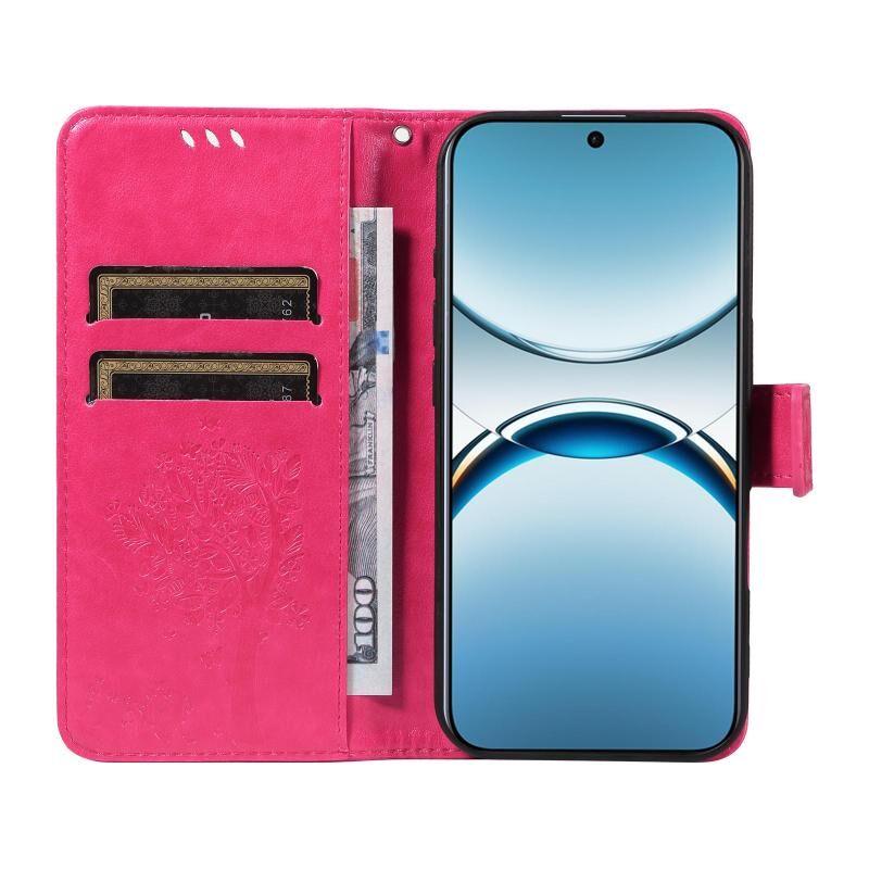 For OPPO Find X8 Global Tree & Cat Embossed Pattern Flip Leather Phone Case(Rose Red)