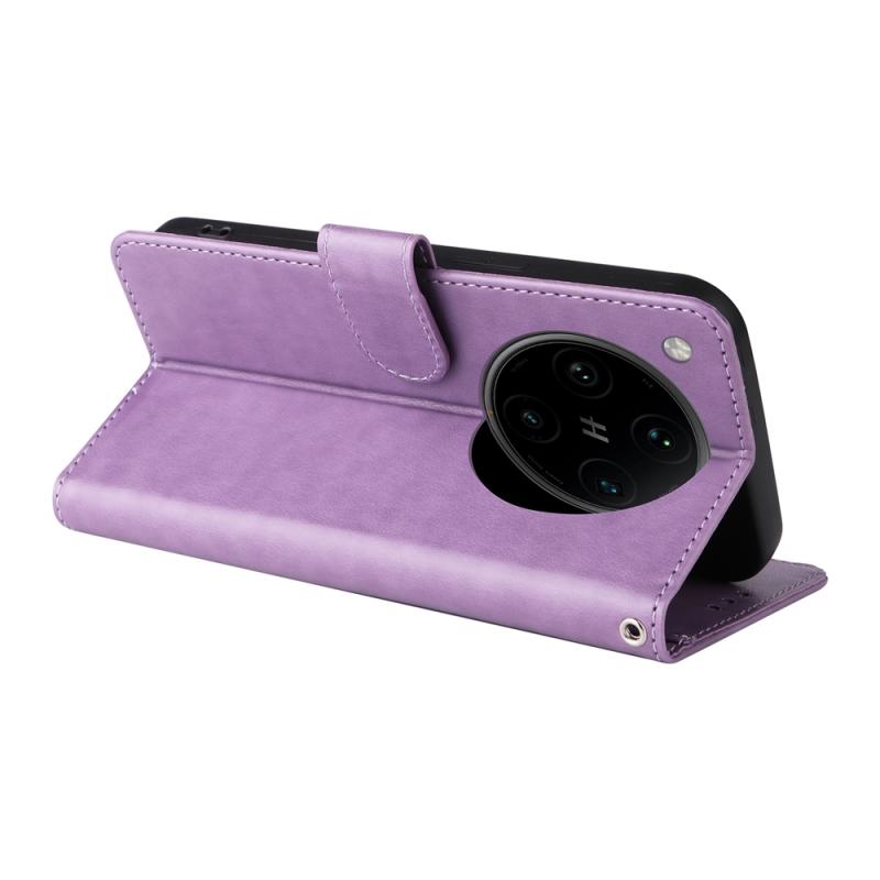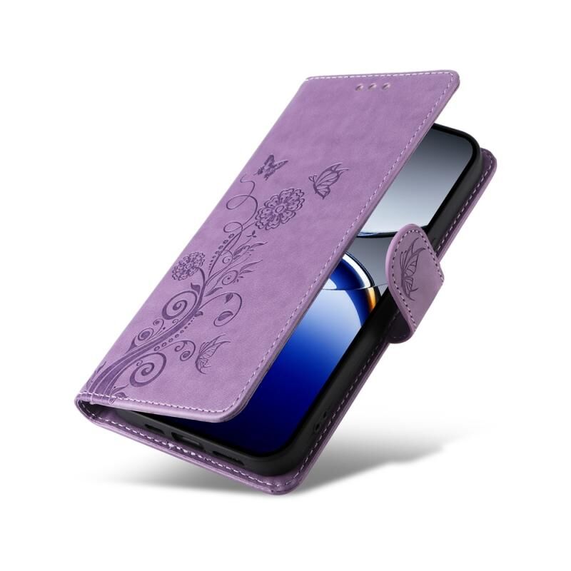For OPPO Find X8 Pro Embossed Butterfly Flowers Leather Phone Case(Purple)