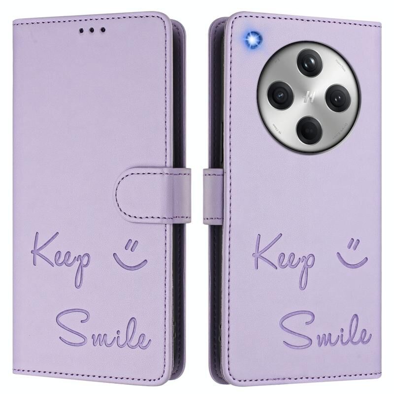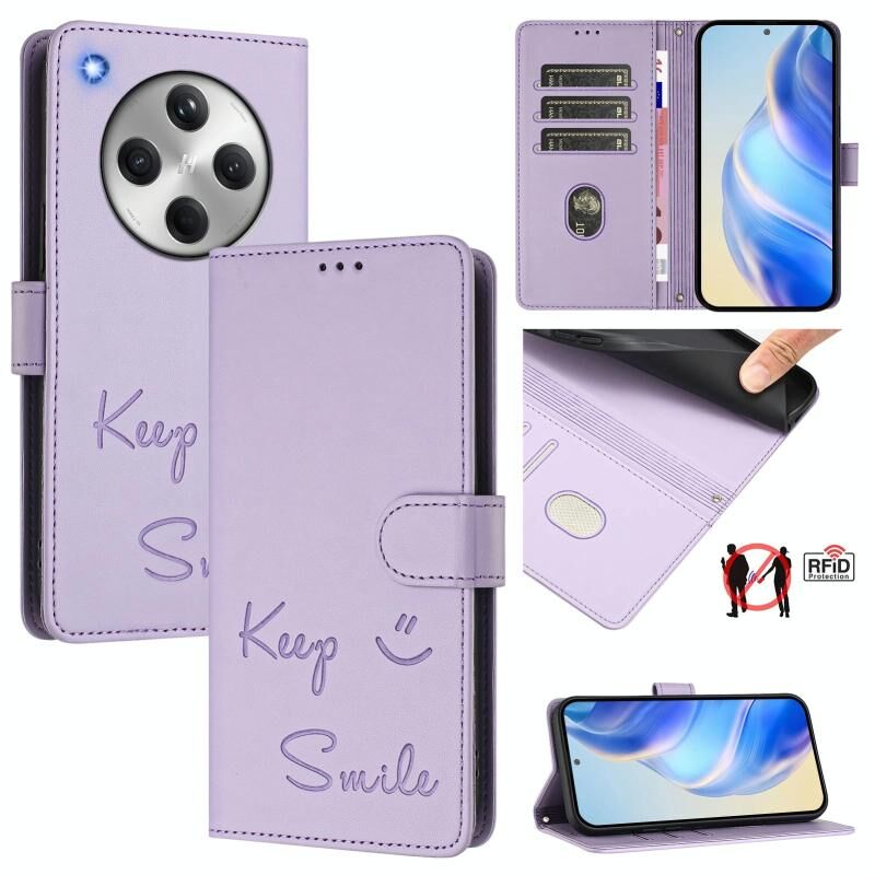 Για OPPO Βρείτε X8 Χαμόγελο ανάγλυφο RFID δερμάτινη θήκη τηλεφώνου (Light Purple)