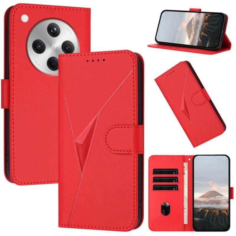 Θήκη τηλεφώνου από δέρμα με μαγνητικό κούμπωμα σε σχήμα τριγώνου για OPPO Find X8 (Κόκκινο)