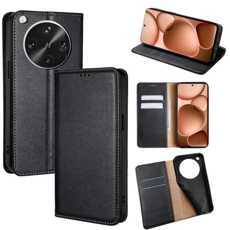 Θήκη τηλεφώνου από δέρμα με μαγνητική έλξη, συμπαγούς χρώματος, για OPPO Find X8 Ultra 5G (Μαύρο)