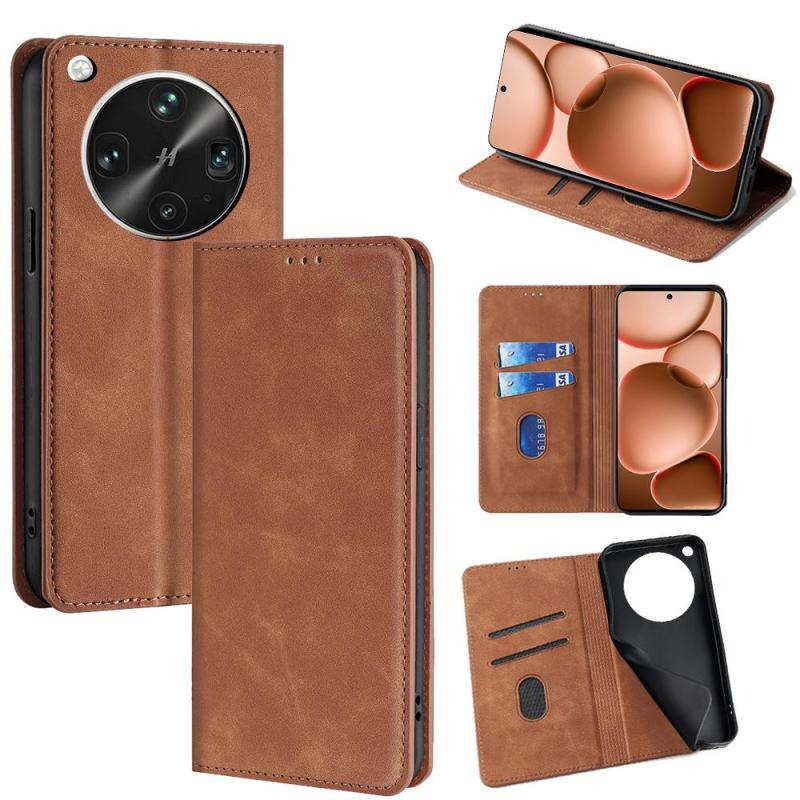 Θήκη τηλεφώνου από δέρμα με μαγνητική αίσθηση για OPPO Find X8 Ultra 5G (Ανοιχτό καφέ)