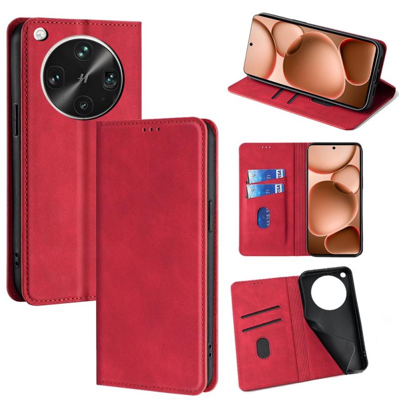 Θήκη τηλεφώνου από δέρμα με μαγνητική αίσθηση για OPPO Find X8 Ultra 5G (Κόκκινο)