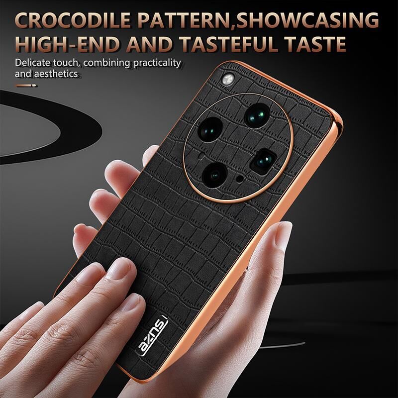 Θήκη κινητού τηλεφώνου πλήρους κάλυψης με ηλεκτρολυτικό πλαίσιο και υφή κροκόδειλου για OPPO Find X8 Ultra AZNS (Πράσινο) (πράσινο)