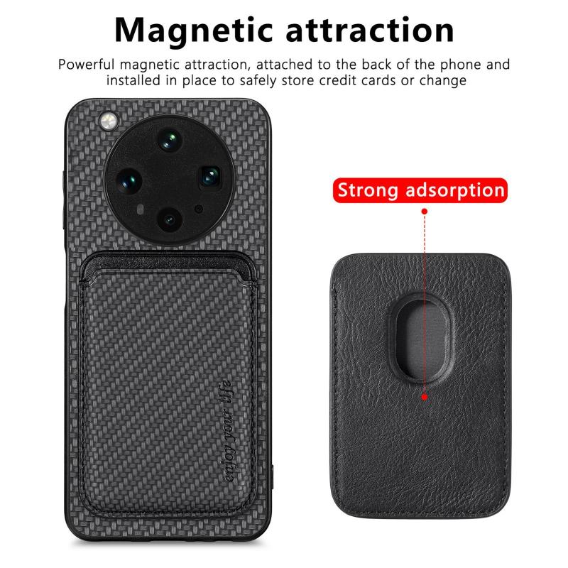 For OPPO Find X8 Ultra Carbon Fiber Leather Card Magsafe Magnetic Phone Case(Black)