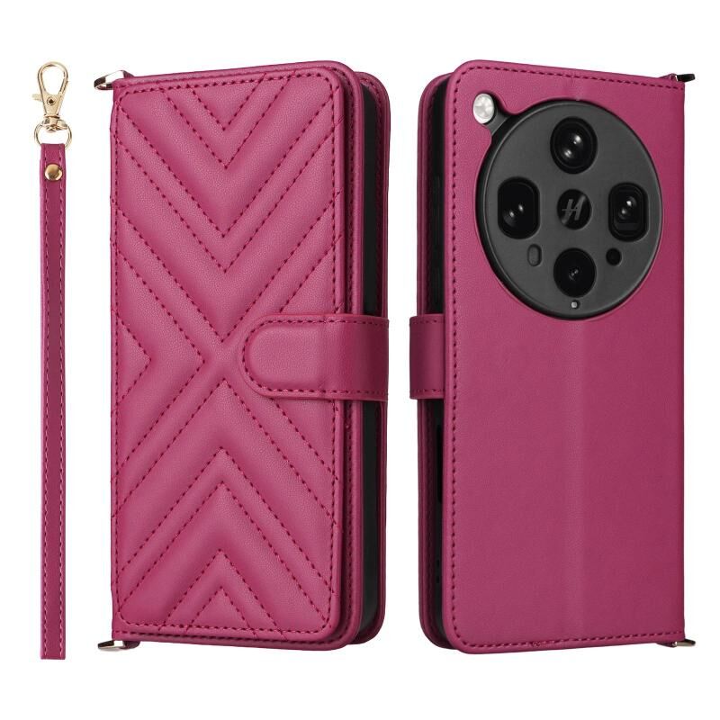 Θήκη τηλεφώνου από δέρμα για OPPO Find X8 Ultra, πολυλειτουργική με 6 υποδοχές για κάρτες και λουρί καρπού (Ροζέ κόκκινο)
