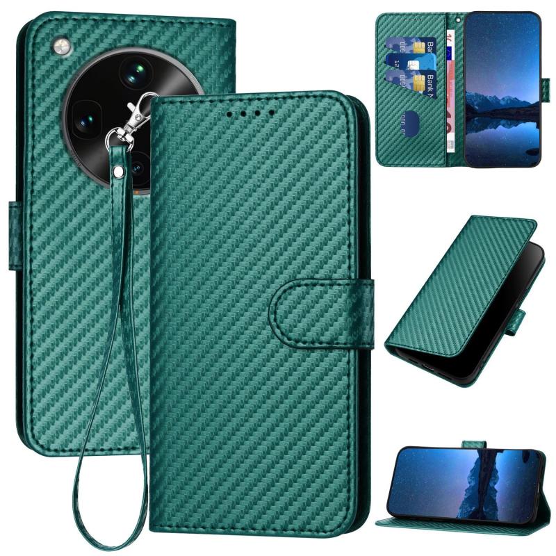 For OPPO Find X8 Ultra YX0070 Carbon Fiber Buckle Leather Phone Case with Lanyard(Dark Green)