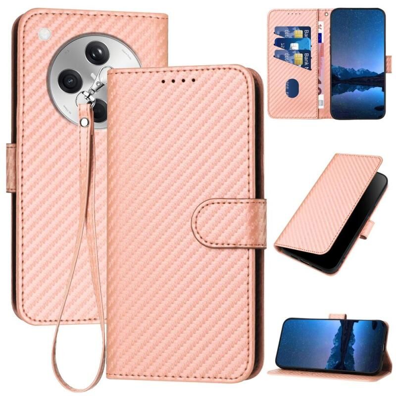 For OPPO Find X8 YX0070 Carbon Fiber Buckle Leather Phone Case with Lanyard(Pink)