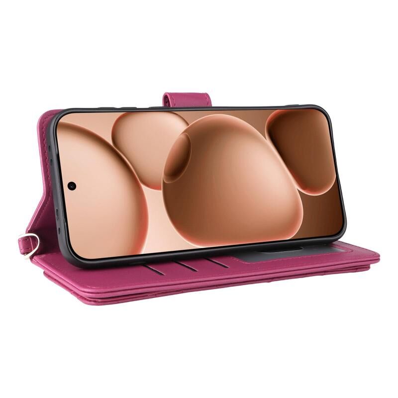 Θήκη τηλεφώνου από δέρμα για OPPO Find X8s+ 5G, πολυλειτουργική με 6 υποδοχές καρτών και λουρί καρπού (Μαύρο)