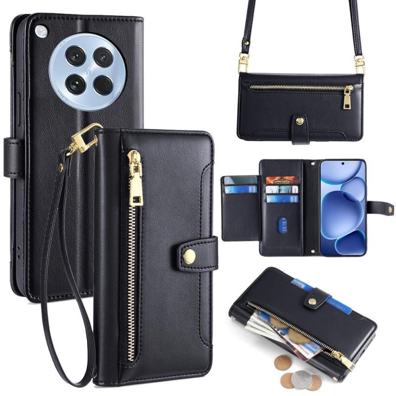 Θήκη τηλεφώνου δερμάτινη με φερμουάρ και σχέδιο αρνιού για OPPO Find X8s 5G (Μαύρο)