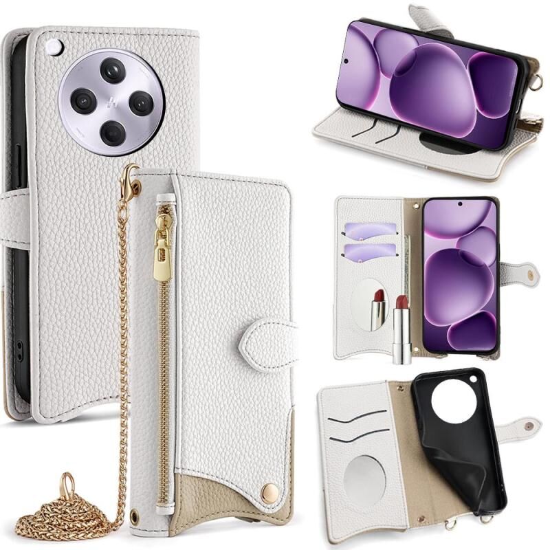 Θήκη τηλεφώνου για OPPO Find X8s+ με αλυσίδα Crossbody, δέρμα Litchi σε σχήμα ουράς ψαριού (Καφέ)