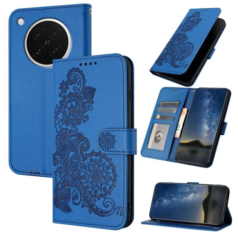 Θήκη τηλεφώνου από δέρμα με ανάγλυφο σχέδιο λουλουδιού Datura για OPPO Find X8s (Μπλε)