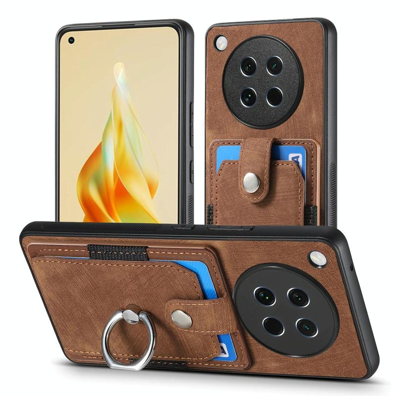 Θήκη τηλεφώνου με κάρτες και δακτύλιο για OPPO Find X8s με υφή retro δέρματος (Μωβ)