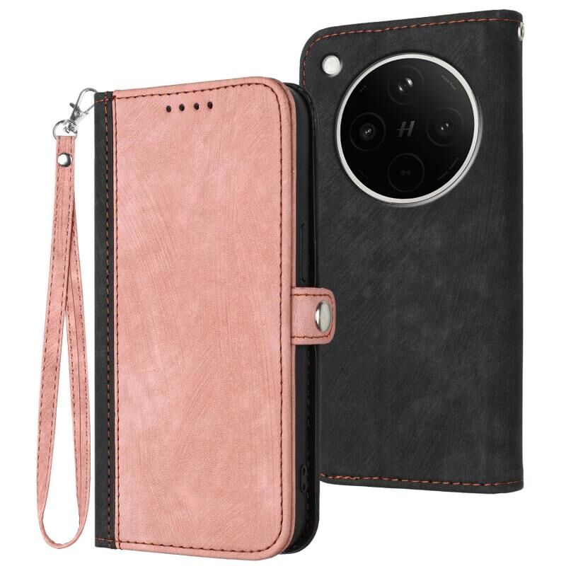 Θήκη τηλεφώνου από δέρμα με λουρί χειρός, διπλού διπλώματος, πλευρικής αγκράφας για OPPO Find X8s+ (ρόζ)