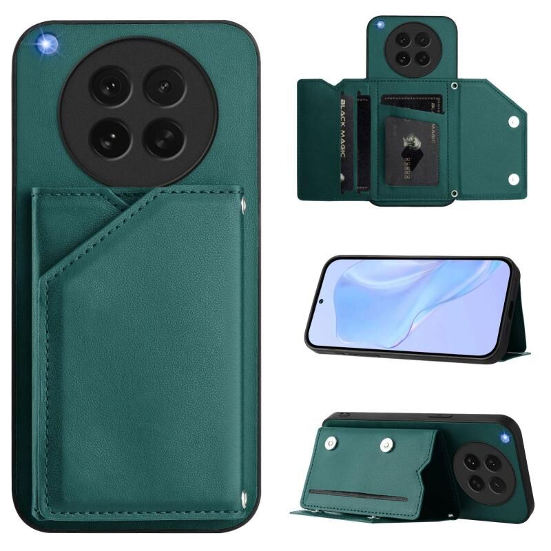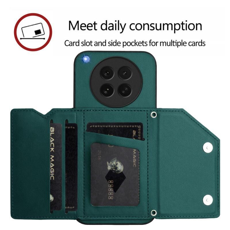 Θήκη τηλεφώνου για OPPO Find X8s με αίσθηση δέρματος, τέσσερις θήκες καρτών και λουρί καρπού (πράσινο)