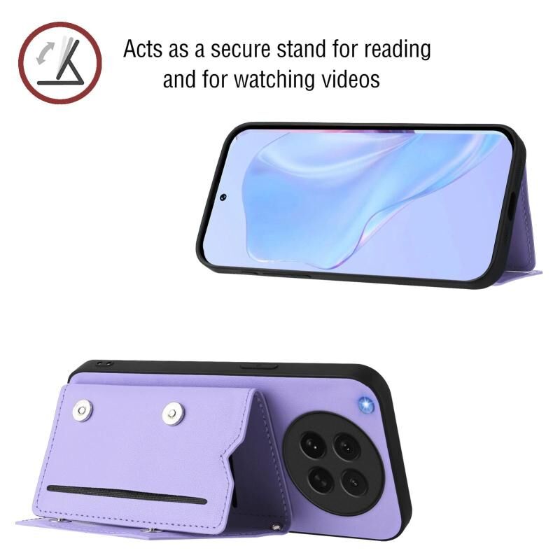 Θήκη τηλεφώνου για OPPO Find X8s με αίσθηση δέρματος, τέσσερις θήκες καρτών και λουρί καρπού (Μωβ)