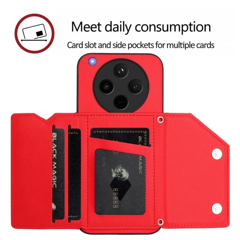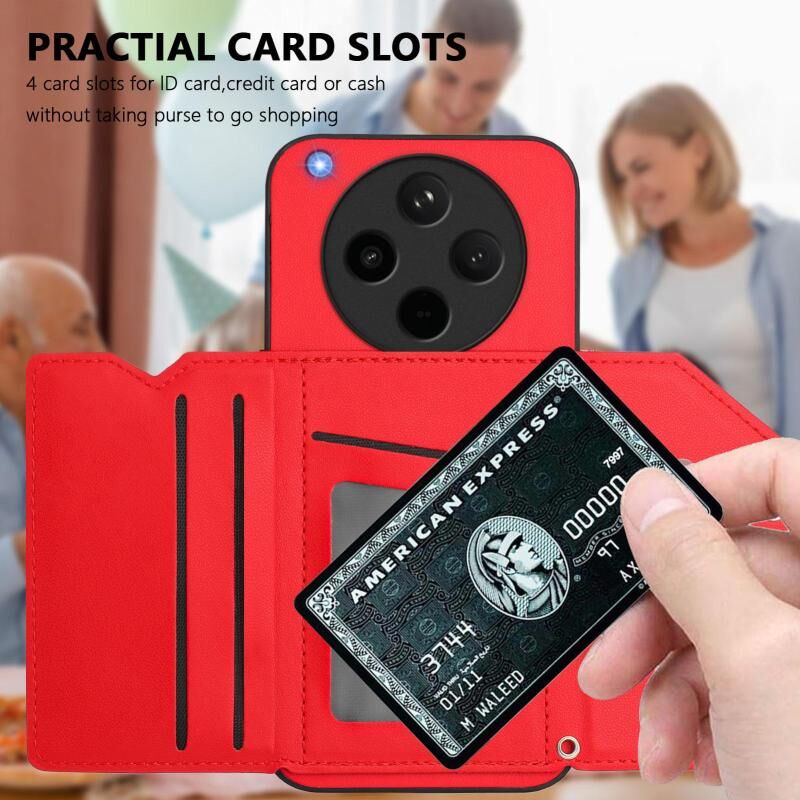 Θήκη τηλεφώνου για OPPO Find X8s+ με αίσθηση δέρματος, τέσσερις θήκες καρτών και λουρί καρπού (Ροζ)