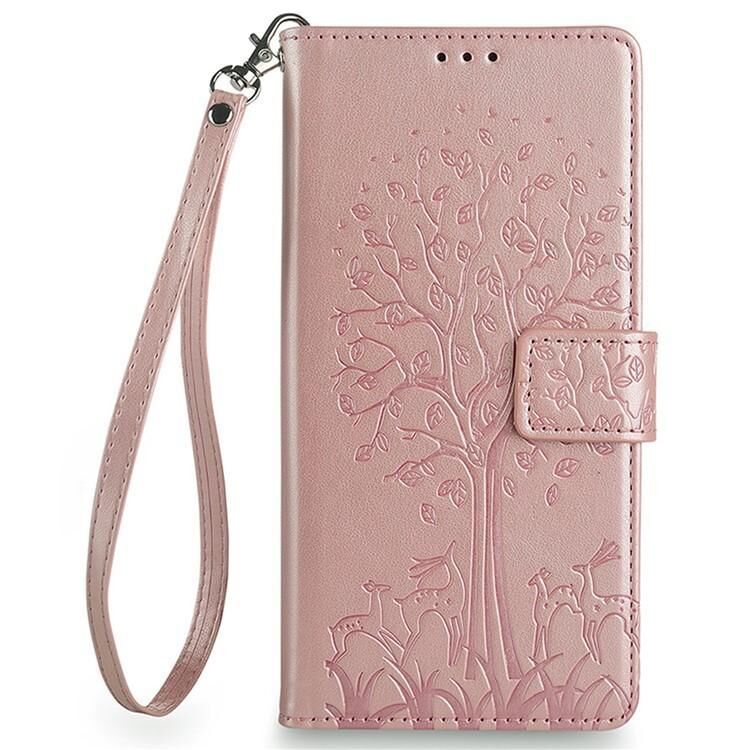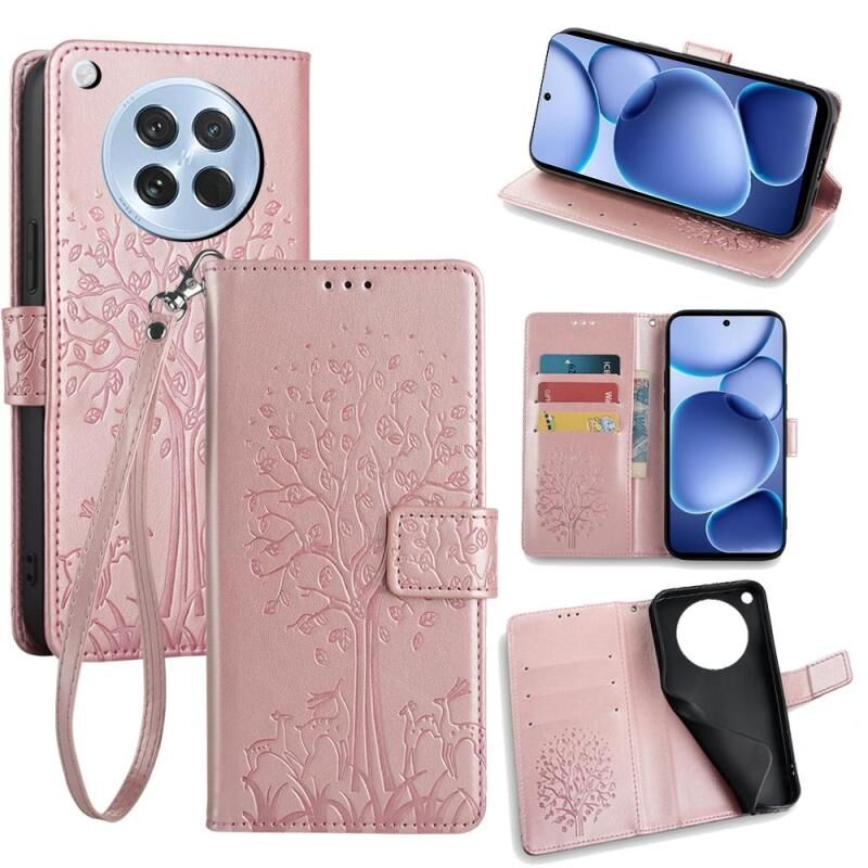 Θήκη τηλεφώνου OPPO Find X8s από δέρμα με ανάγλυφο σχέδιο Δέντρου & Ελαφιού (Ροζ χρυσός)