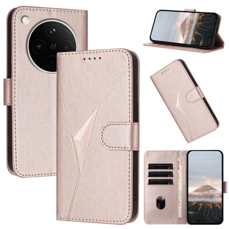 Θήκη τηλεφώνου από δέρμα με μαγνητικό κούμπωμα σε σχήμα τριγώνου για OPPO Find X8s+ (Ροζ χρυσός)