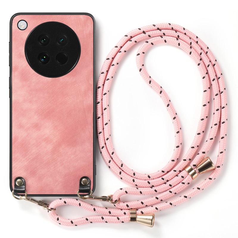 For OPPO Find X8s Vintage Leather PC Back Cover Phone Case with Crossbody Strap(Pink)
