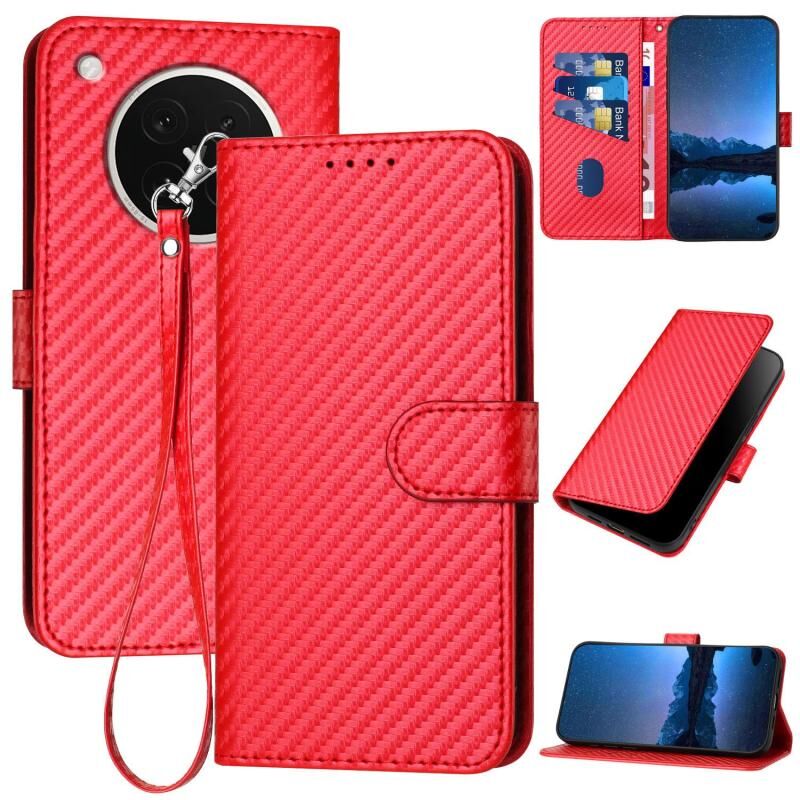 Θήκη τηλεφώνου για OPPO Find X8s YX0070 από ανθρακονήματα με δερμάτινη αγκράφα και κορδόνι (Κόκκινο)