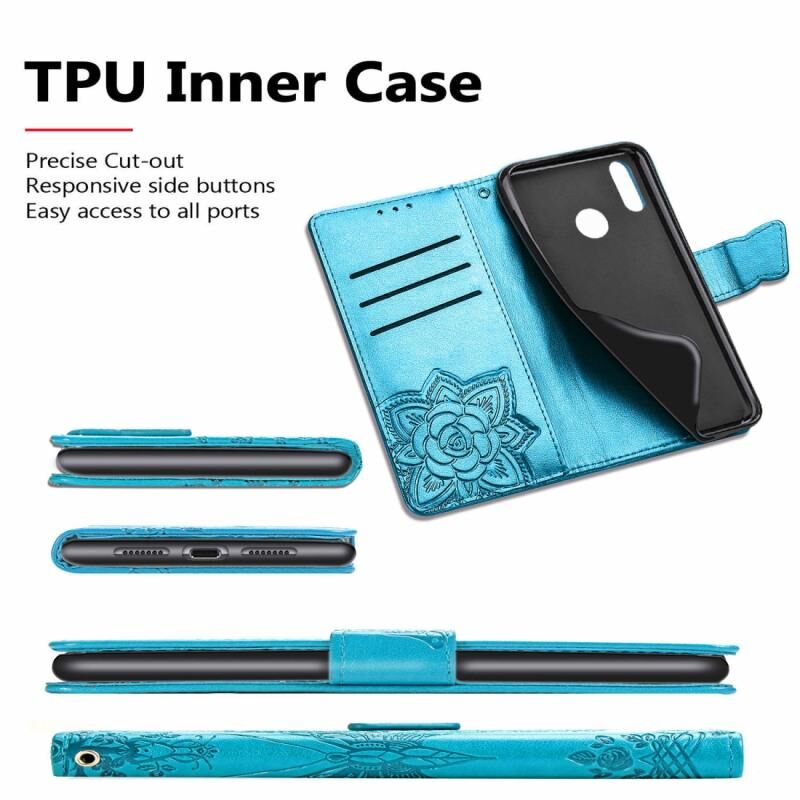 Θήκη δέρματος οριζόντιας αναδίπλωσης για OPPO K1 Butterfly Love Flower με ανάγλυφο σχέδιο, με βάση στήριξης / υποδοχή κάρτας / πορτοφόλι / κορδόνι (Μπλε)