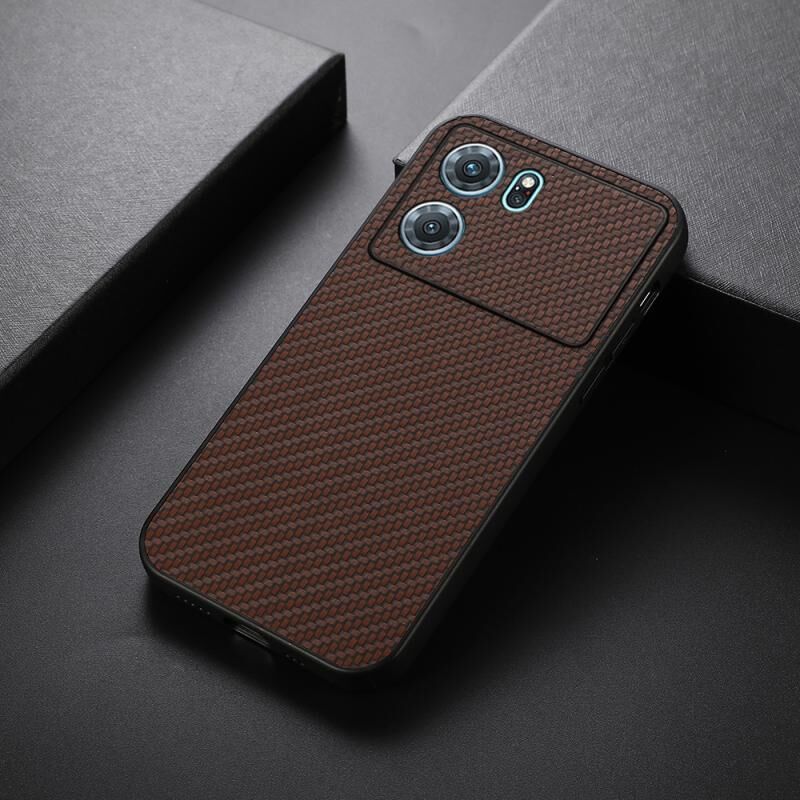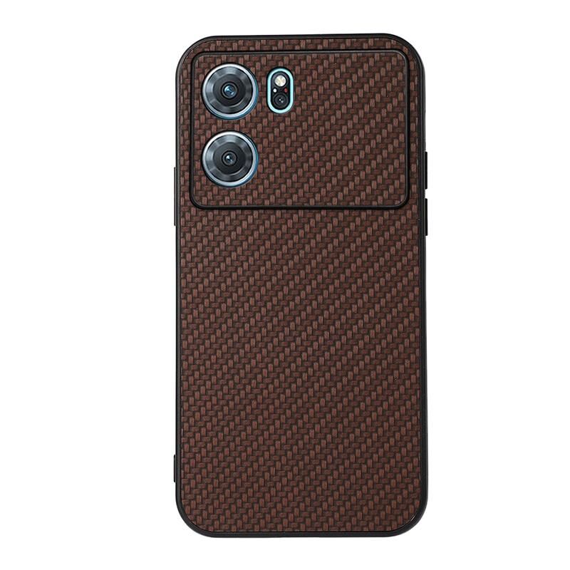 Για OPPO K10 5G Ακριβής τρύπα ανθρακονήματα υφή PU τηλέφωνο υπόθεση (Καφέ)