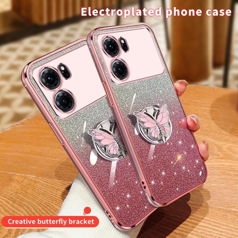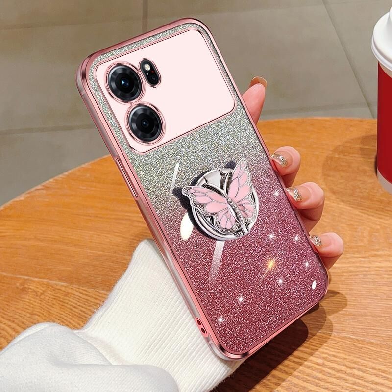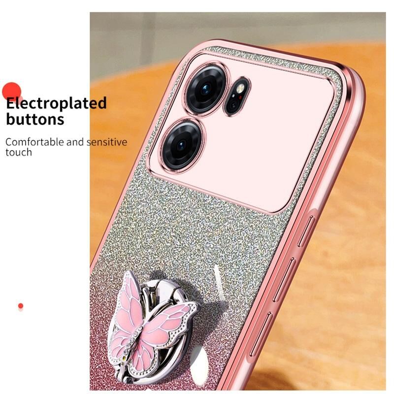 Για OPPO K10 Επιμεταλλωμένο βαθμίδα Glitter πεταλούδα κάτοχος TPU τηλέφωνο υπόθεση (ρόζ)