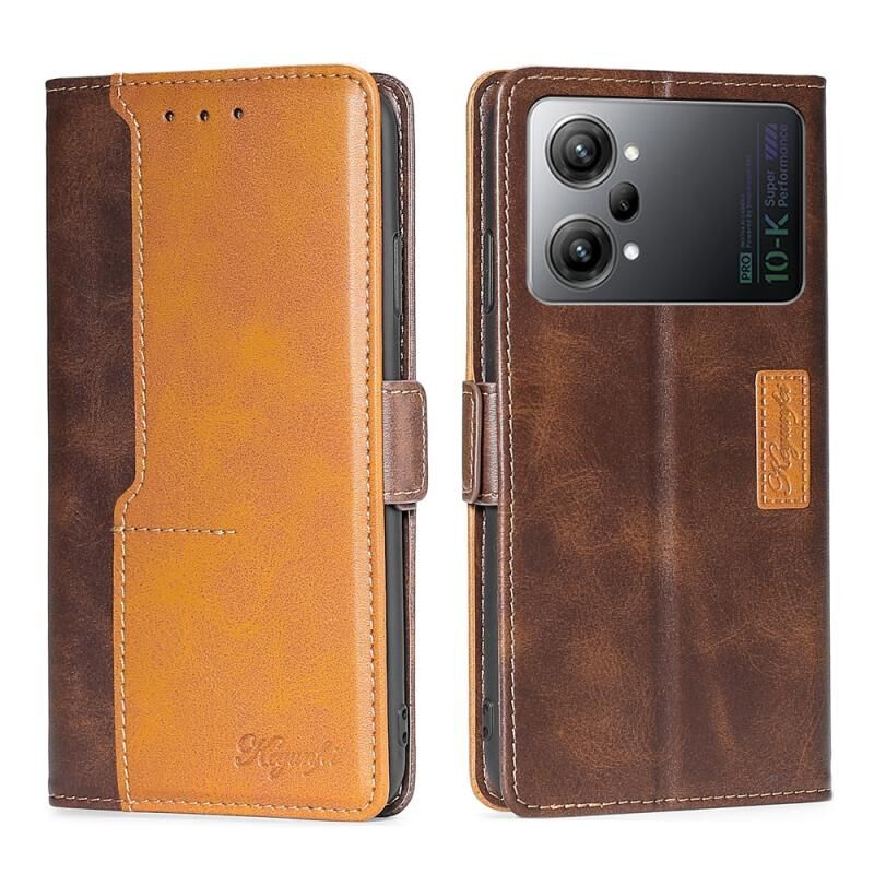 Για OPPO K10 Pro 5G αντίθεση χρώμα πλευρά πόρπη δερμάτινη θήκη τηλεφώνου (σκούρο καφέ + χρυσό)