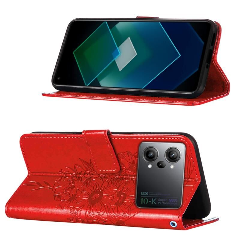 Για OPPO K10 Pro 5G ανάγλυφη πεταλούδα Flip δέρμα τηλέφωνο υπόθεση (Κόκκινο)