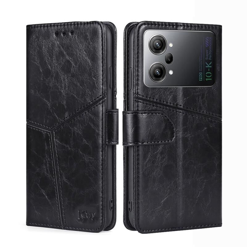 Για OPPO K10 Pro 5G γεωμετρική ραφή οριζόντια Flip δέρμα τηλέφωνο υπόθεση (Μαύρο)