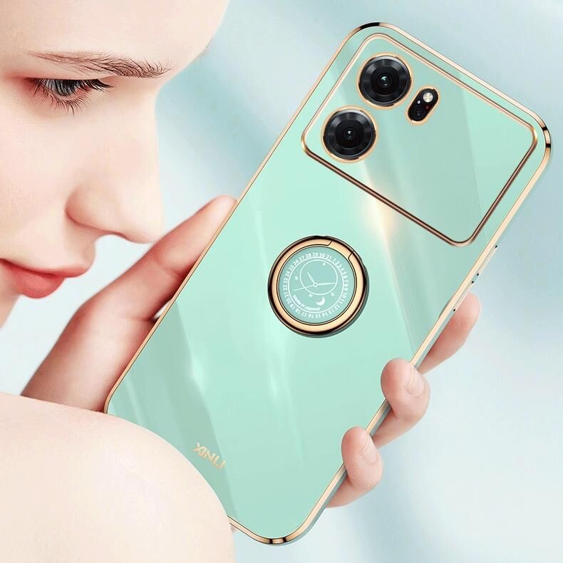 Θήκη τηλεφώνου OPPO K10 XINLI με ευθείες άκρες, ηλεκτρολυτική επίστρωση TPU και δακτύλιο στήριξης (ρόζ)