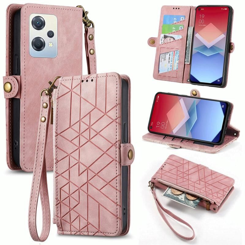Για OPPO K10X γεωμετρική φερμουάρ πορτοφόλι πλευρά πόρπη δερμάτινη θήκη τηλεφώνου (ροζ)
