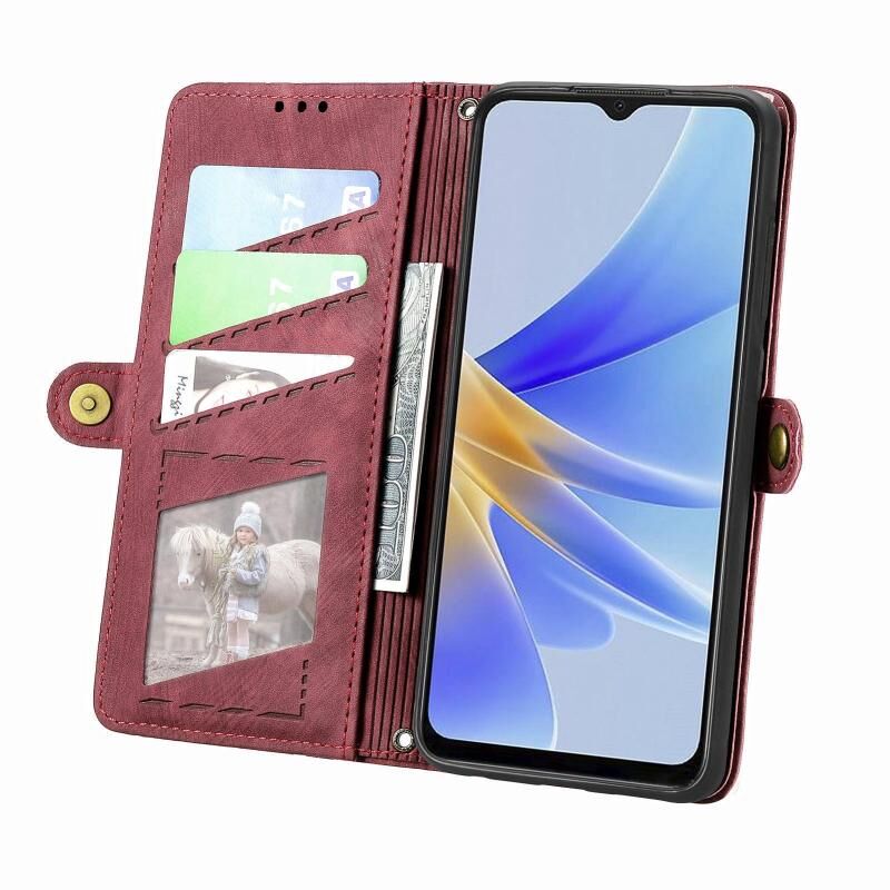 Για OPPO K10X γεωμετρική φερμουάρ πορτοφόλι πλευρά πόρπη δερμάτινη θήκη τηλεφώνου (κόκκινο)