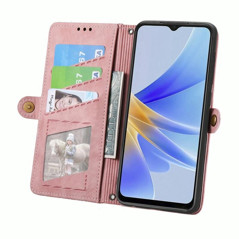 Για OPPO K11 5G γεωμετρική φερμουάρ πορτοφόλι πλευρά πόρπη δερμάτινη θήκη τηλεφώνου (ρόζ)