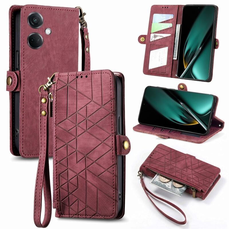 Για OPPO K11 5G γεωμετρική φερμουάρ πορτοφόλι πλευρά πόρπη δερμάτινη θήκη τηλεφώνου (Κόκκινο)