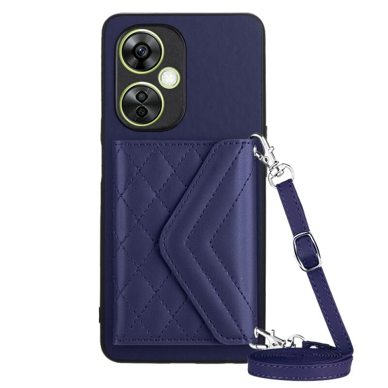 Θήκη κινητού τηλεφώνου με υφή ρόμβου και μακρύ κορδόνι για OPPO K11X / OnePlus Nord CE 3 Lite (Μπλε)