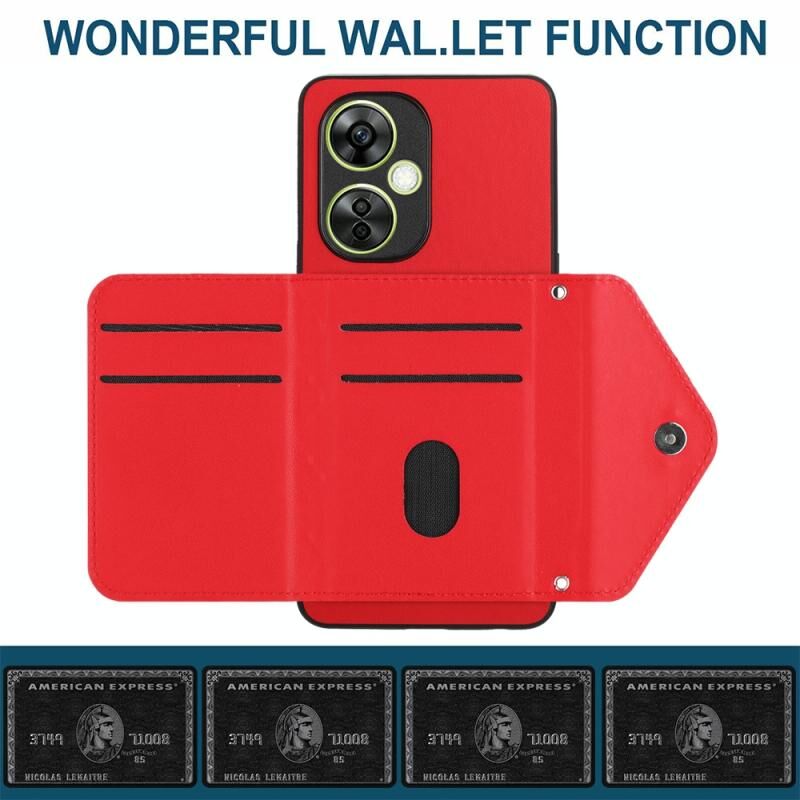 Για OPPO K11X / OnePlus Nord CE 3 Lite Rhombic υφή κάρτα τσάντα RFID υπόθεση τηλεφώνου με μακρύ κορδόνι (Κόκκινο)