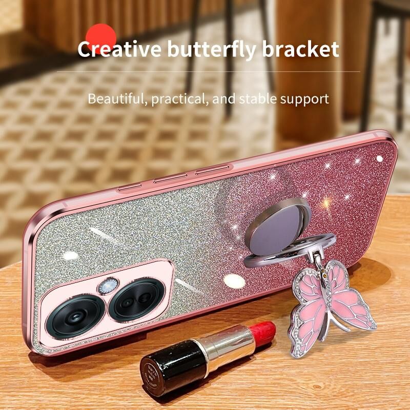 Για OPPO K11x Επιμεταλλωμένο διαβάθμιση Glitter πεταλούδα κάτοχος TPU τηλέφωνο υπόθεση (μαύρο)