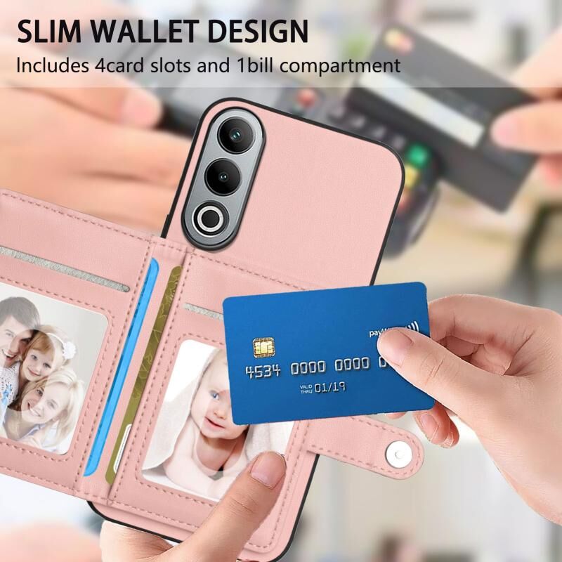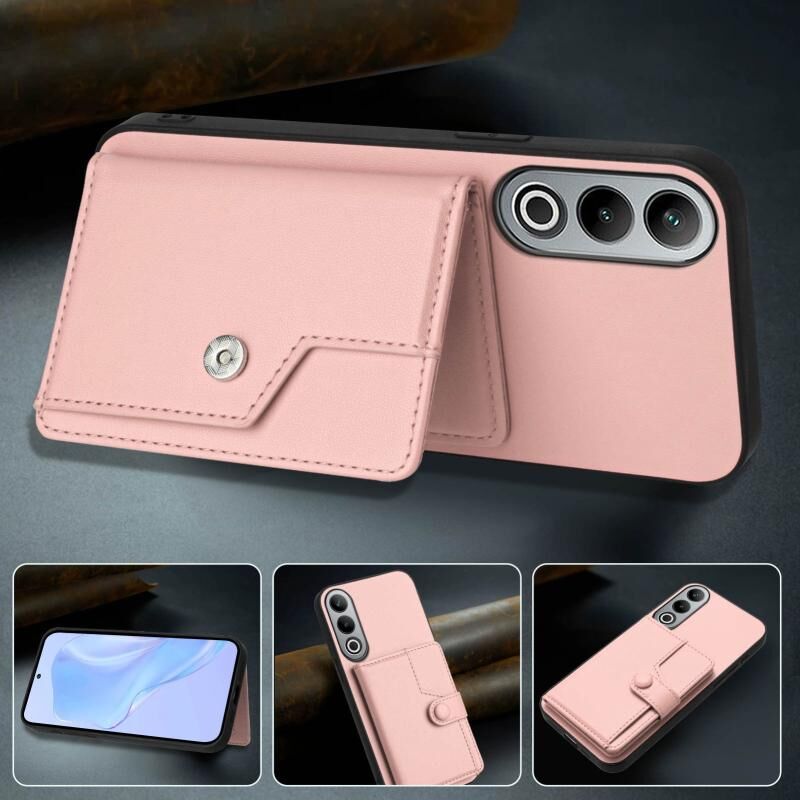 For OPPO K12 5G Button Card Bag RFID Anti-theft Phone Case(Pink)
