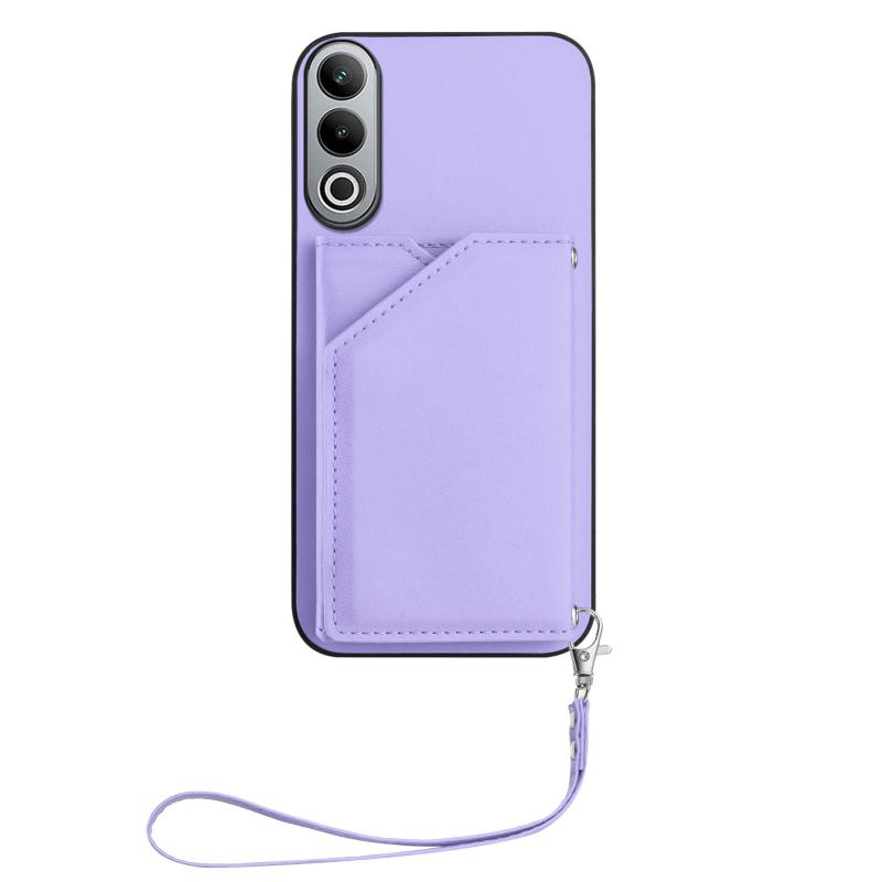 For OPPO K12 5G Skin Feel Four Card Slots Phone Case with Wrist Strap(Purple)