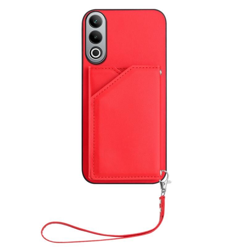 For OPPO K12 5G Skin Feel Four Card Slots Phone Case with Wrist Strap(Red)