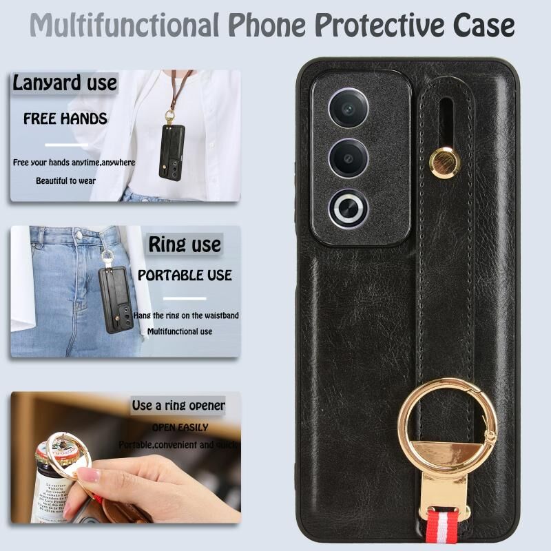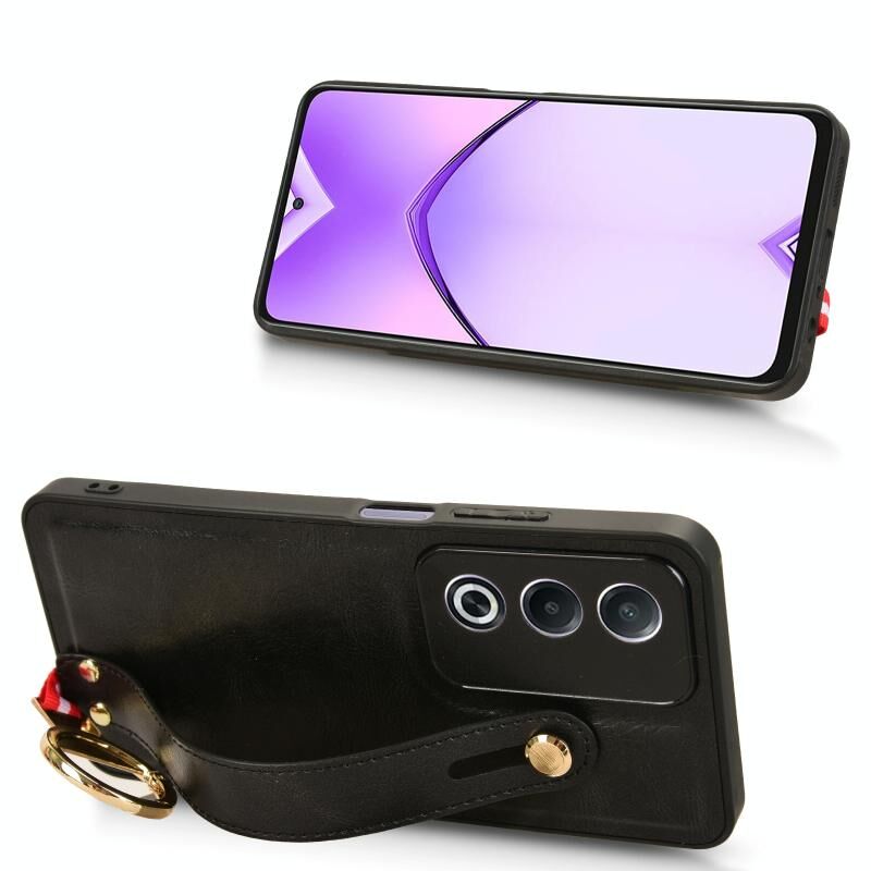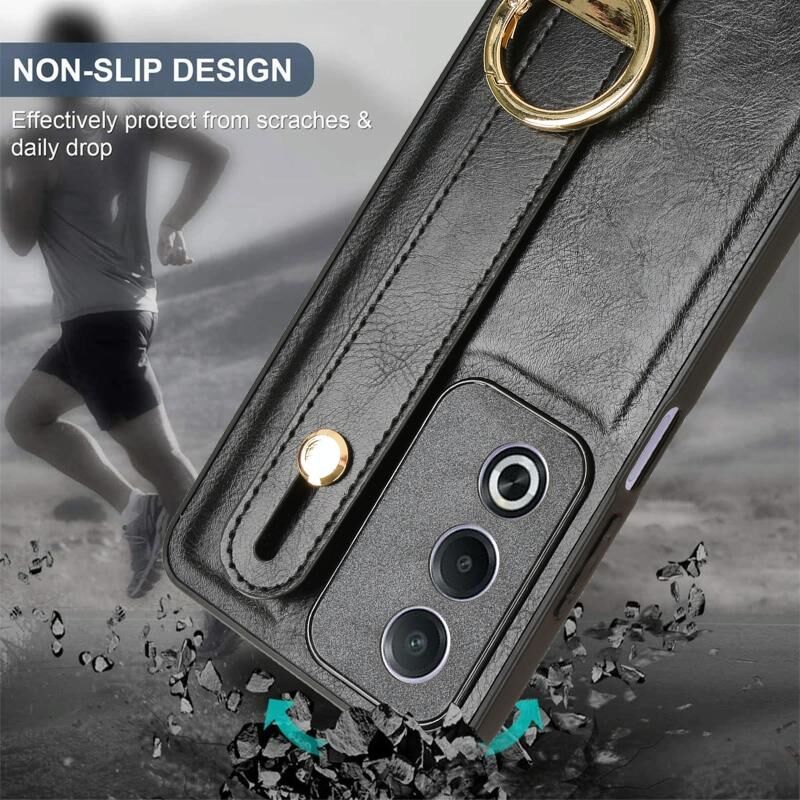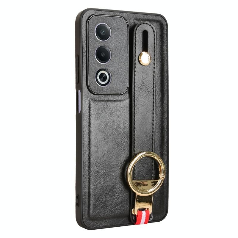 Για OPPO K12x 5G / A3 Pro Global Wristband δέρμα πίσω τηλέφωνο υπόθεση (μαύρο)