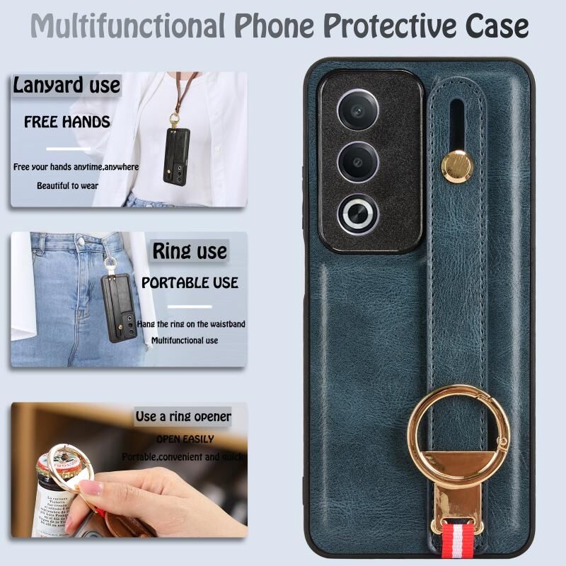 Για OPPO K12x 5G / A3 Pro Global Wristband δέρμα πίσω τηλέφωνο υπόθεση (μπλε)