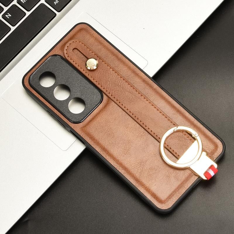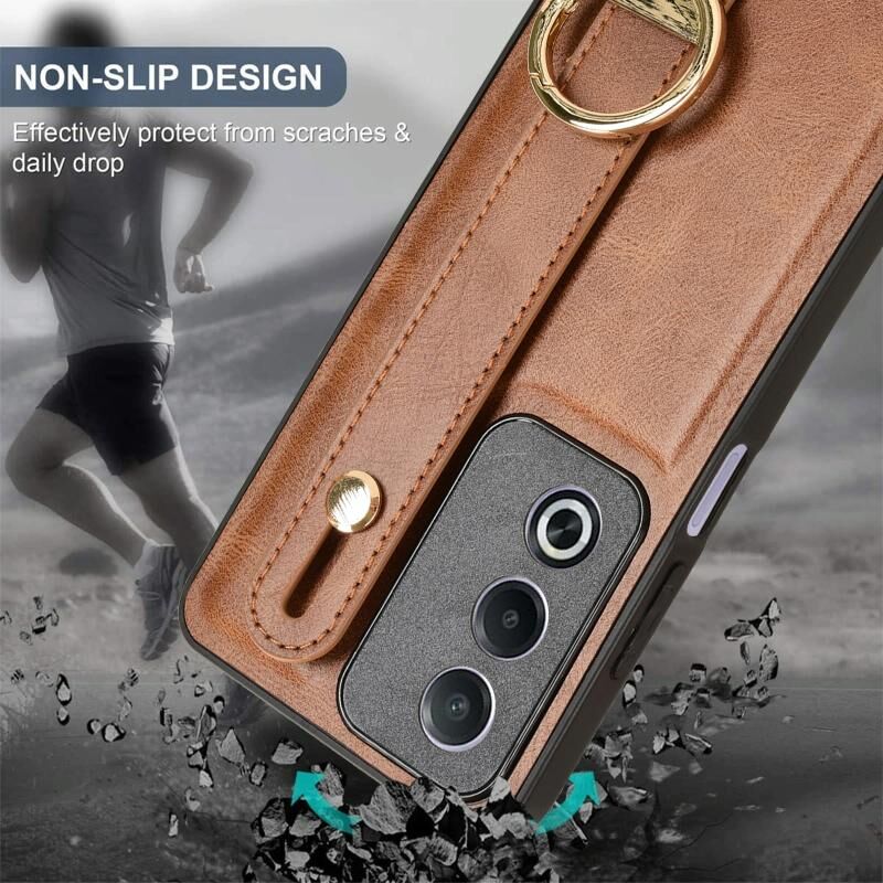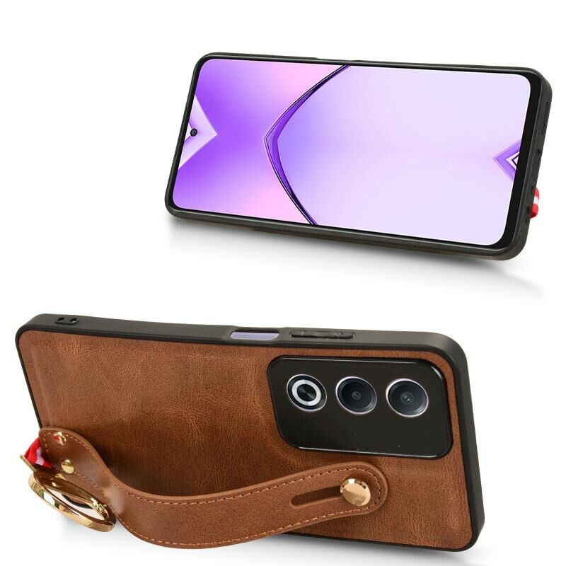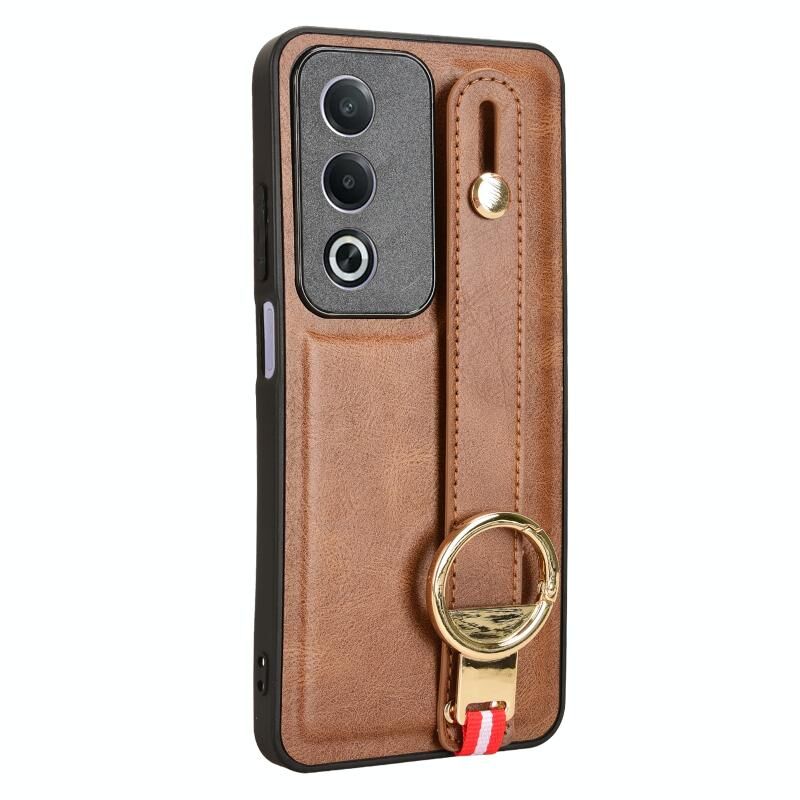 Για OPPO K12x 5G / A3 Pro Global Wristband δέρμα πίσω τηλέφωνο υπόθεση (καφέ)