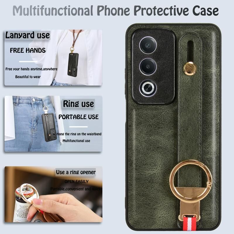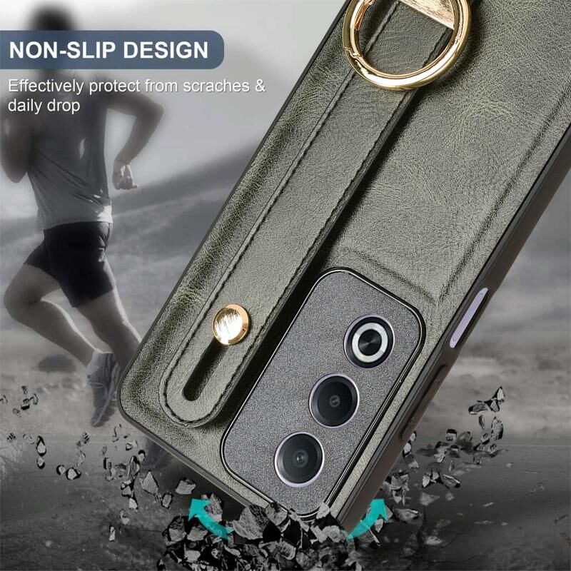 Για OPPO K12x 5G / A3 Pro Global Wristband δέρμα πίσω τηλέφωνο υπόθεση (πράσινο)