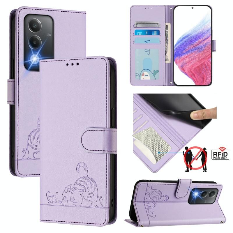 Θήκη τηλεφώνου από δέρμα με ανάγλυφο σχέδιο γάτας και ποντικού για OPPO K12x 5G Global με κορδόνι (Μέντας Πράσινο)
